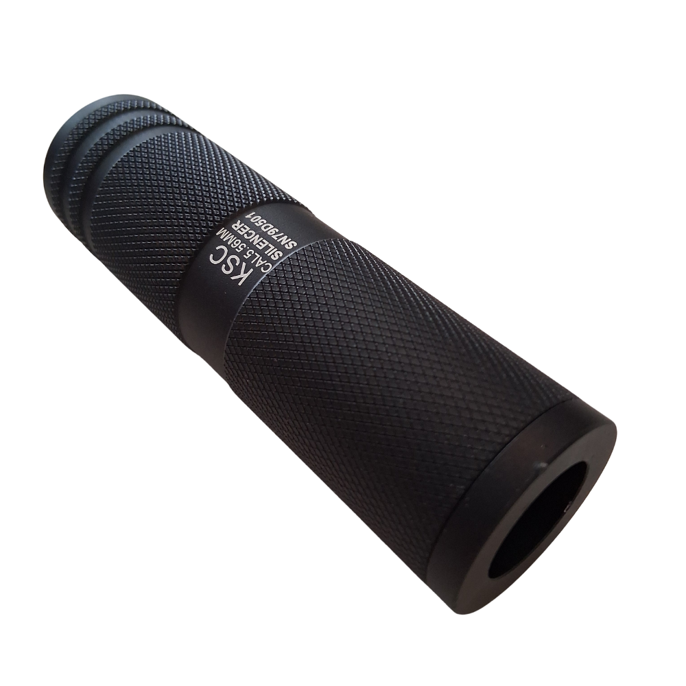 Super lækker lyddæmper fremstillet i aluminium i en simpel konstruktion med et links gevind til at montere på din gelblaster istedet for flammerskjuler.