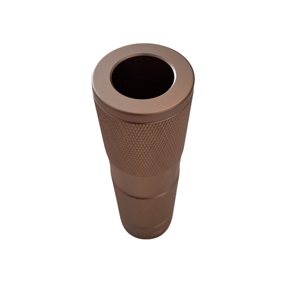 Super lækker lyddæmper fremstillet i aluminium i en simpel konstruktion med et links gevind til at montere på din gelblaster istedet for flammerskjuler.